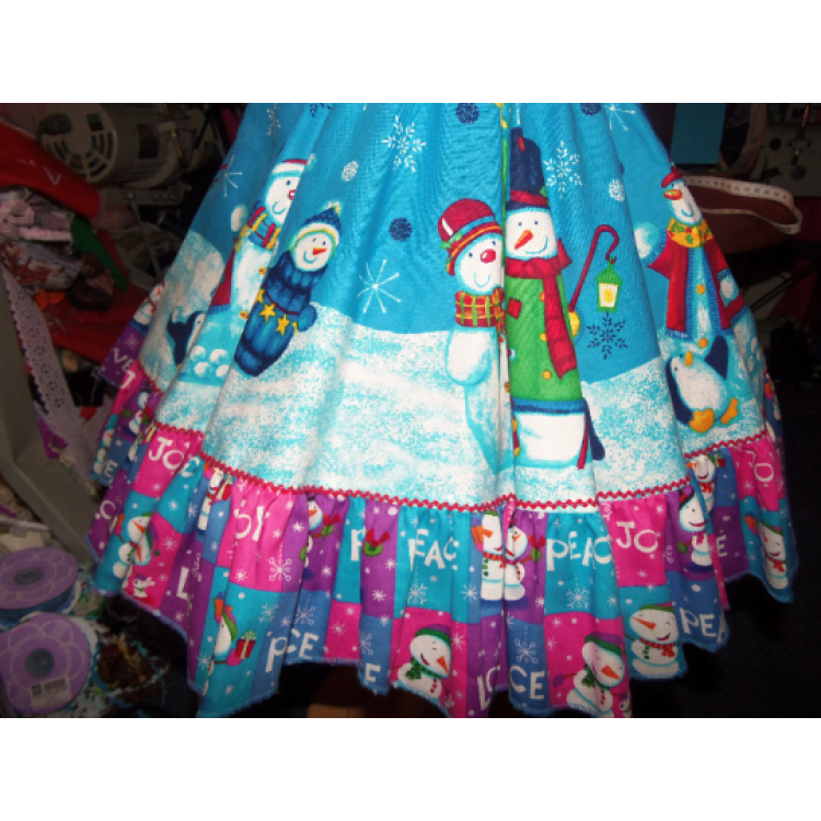 Tags: 2 pc set, Patchwork, Vintage, fabric, Christmas, Snow Man, Ruffles, Dress, and top