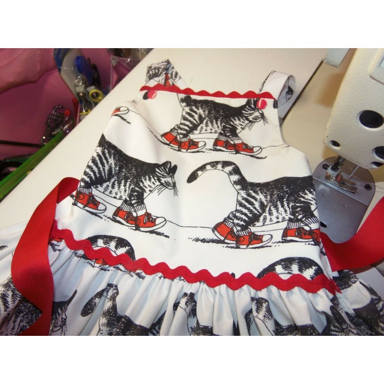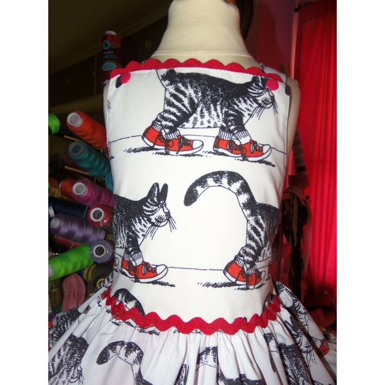 Tags: NEW fabric, cat in red sneakers, Party Dress, Size 5t/6