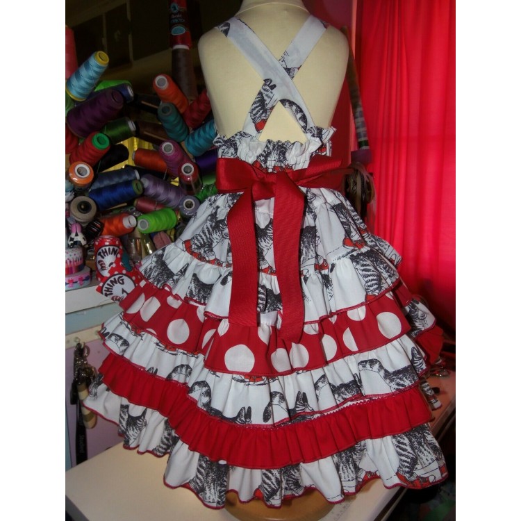 NEW fabric cat in red sneakers Party Dress Size 5t/6