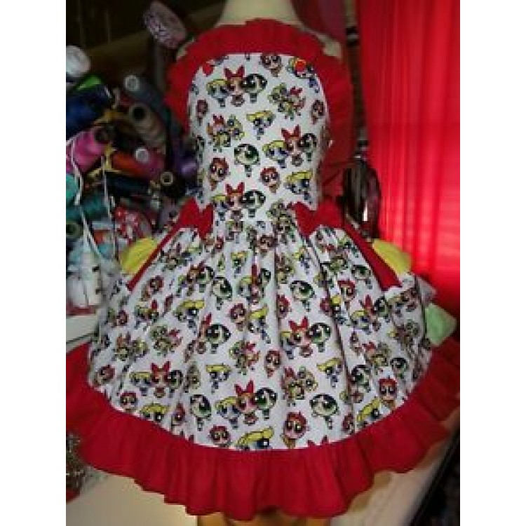 ONLY IN SIZE 5t two pockets This is a very cute print . Waist 22-30in Size 85t 25-in" From shoulder to knee From shoulder to waist -12" Please NOTE: its my sizes please measurement your kids before pay.. Serged seams for quality and durability. Measure from shoulder to hem for length handmade, machine wash delicate, REMOVE PROMPLY, dry on low . made in a smoke free home. Handmade by me. handmade |