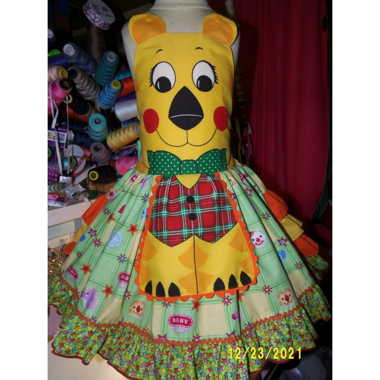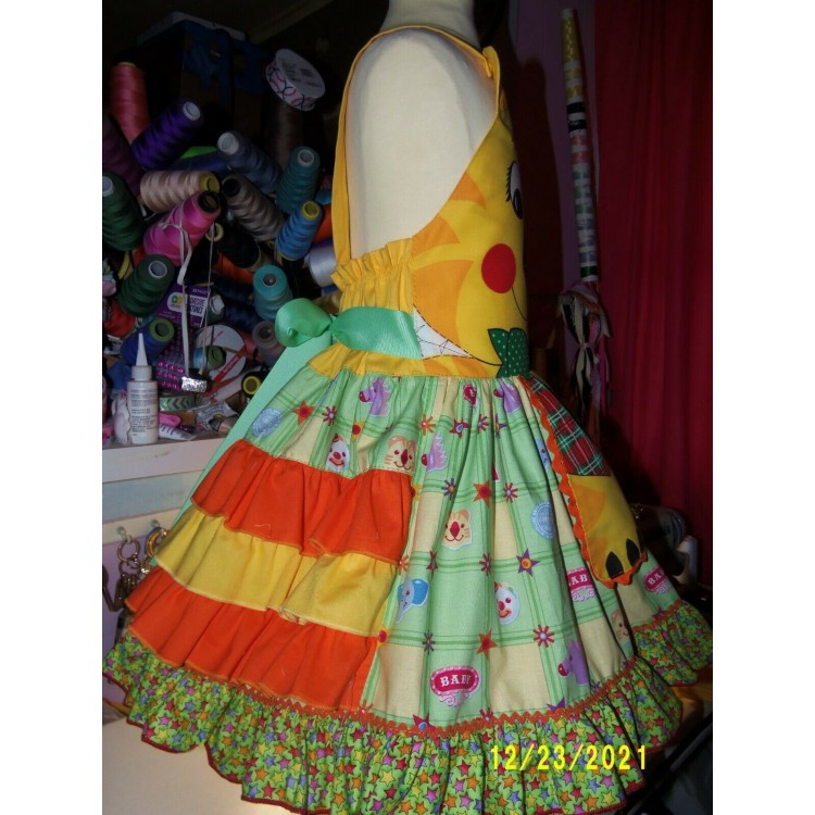 "DRESS Fabric: cotton size 5t-25" from shoulder to knee Cute with tights, leggings or jeans! Waist stretch up to 20-28" From shoulder to waist-12" Serged seams for quality and durability Measure from shoulder to hem for length handmade, machine wash delicate, REMOVE PROMPLY, dry on low . made in a smoke free home. Handmade by me. handmade |