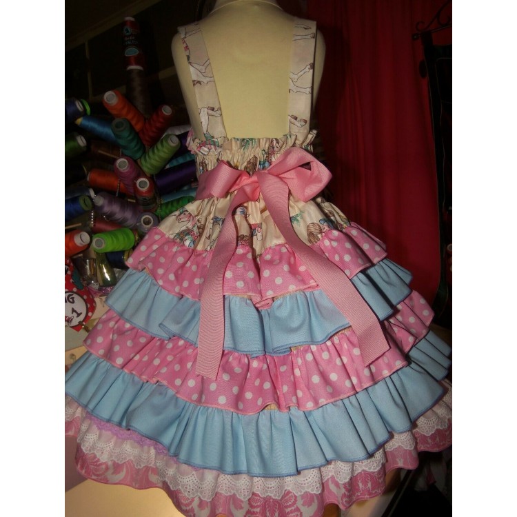 "DRESS Fabric: cotton size 5t-25" from shoulder to knee Cute with tights, leggings or jeans! Waist stretch up to 20-28" From shoulder to waist-12" Serged seams for quality and durability Measure from shoulder to hem for length handmade, machine wash delicate, REMOVE PROMPLY, dry on low . made in a smoke free home. Handmade by me. |