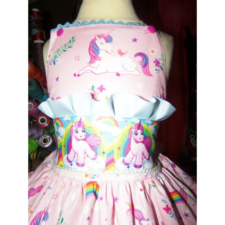 My rainbow Unicorn Pink Ruffle Ribbon Dress Size 4t