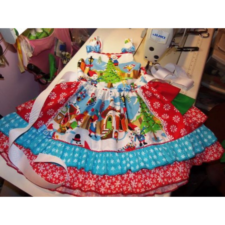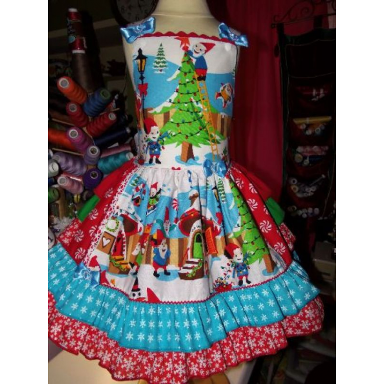 Gnome Sweet Home Christmas Ruffle Dress Size 5 - 6 Ready to ship