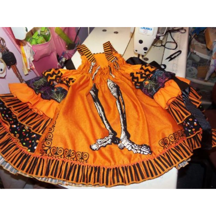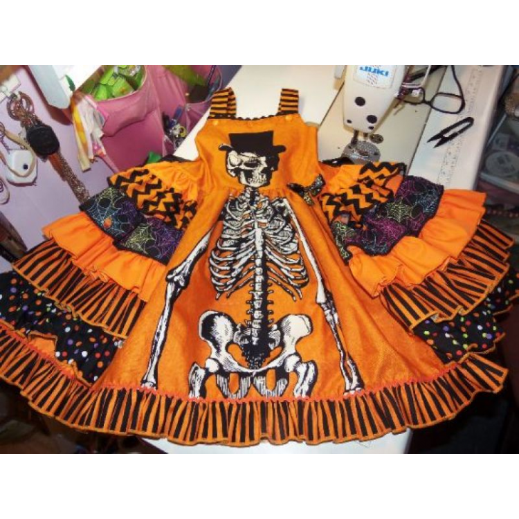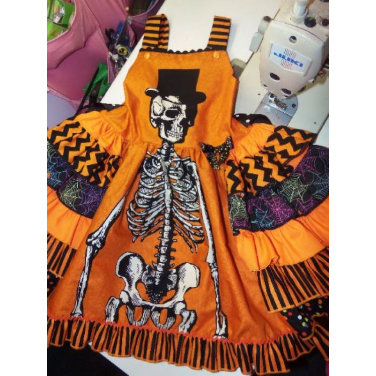 Tags: Halloween, Skeleton, Halloween face, Scary Girl, Dress, Size 5t, 26in length