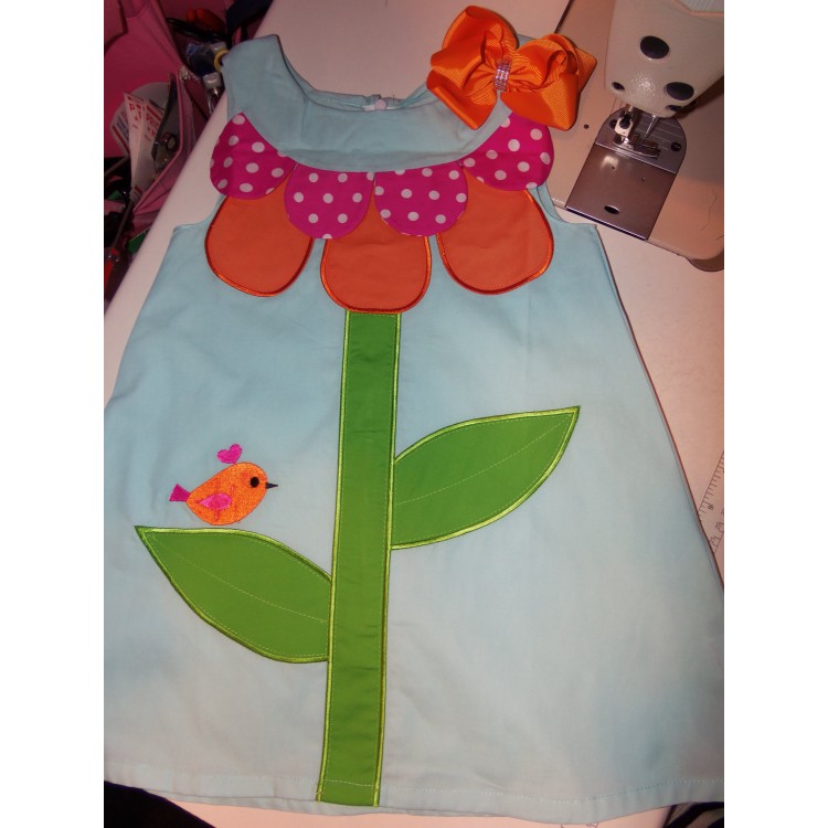 Tags: Patchwork Back to School, Big Flower and Bird, Dress and Bow, Size 4t/5t