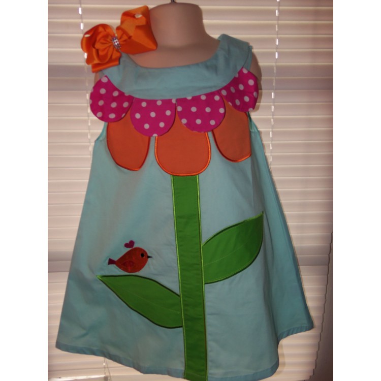 - Product Code: Back to School Big Flower and Bird Dress and Bow