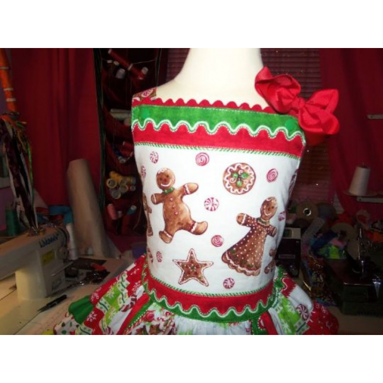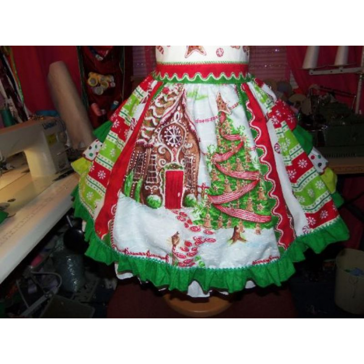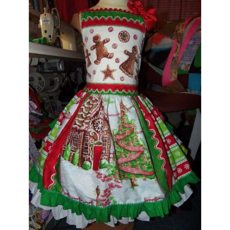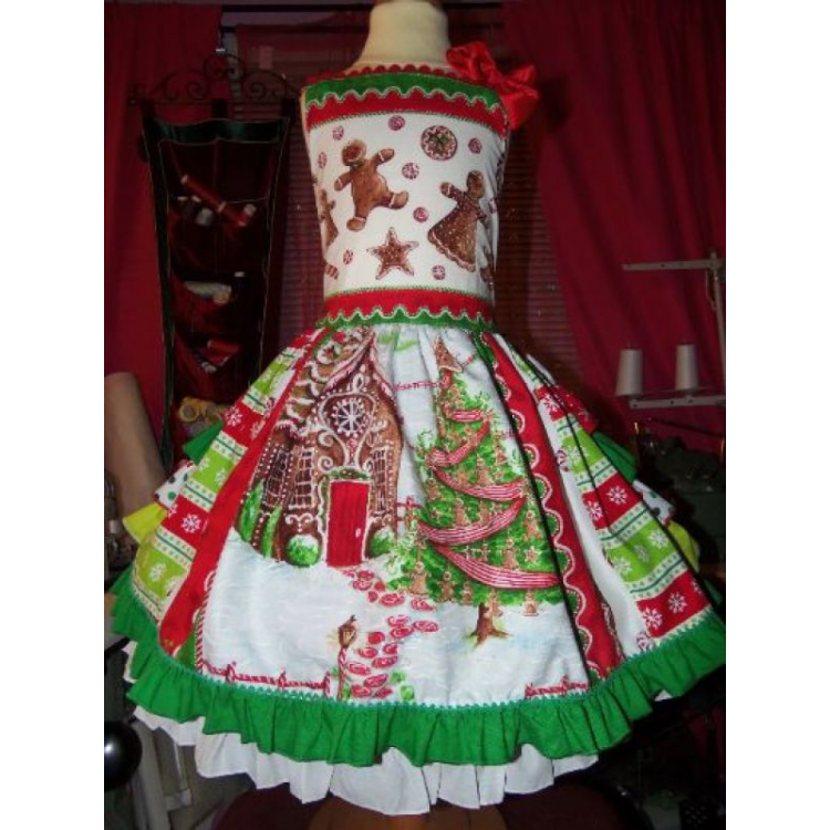 Patchwork Christmas Gingerbread Village Ginger cookies Gingerbread Girl Costume Dress Size 6-7_