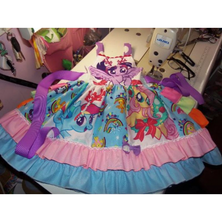 Patchwork Little Pony Christmas Pony Birthday, rainbow dash Tea Party Fairy tale Dress Size 5t Ready to ship