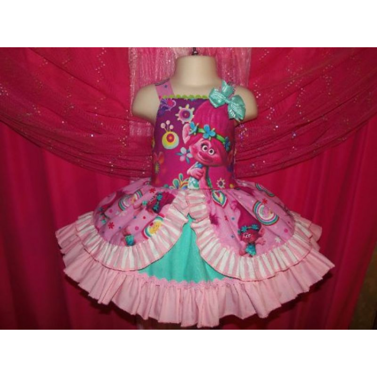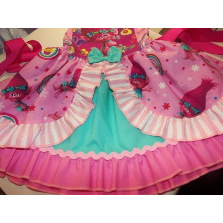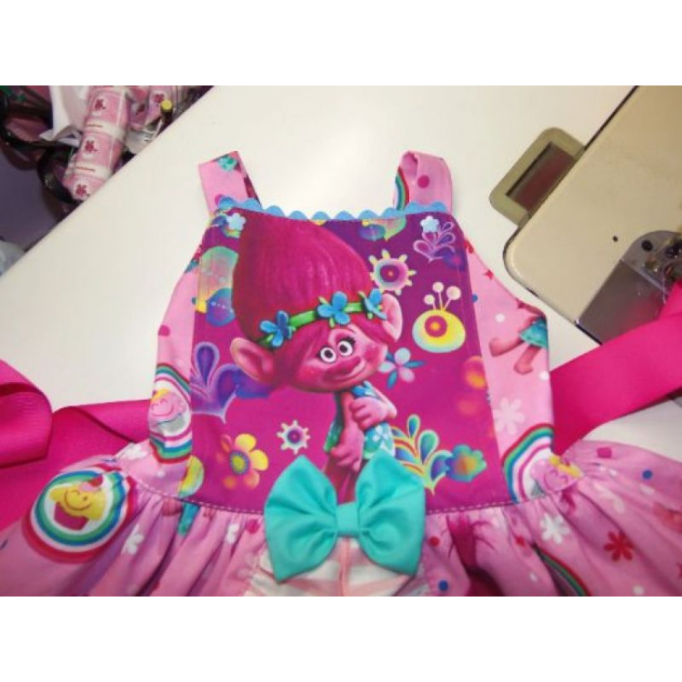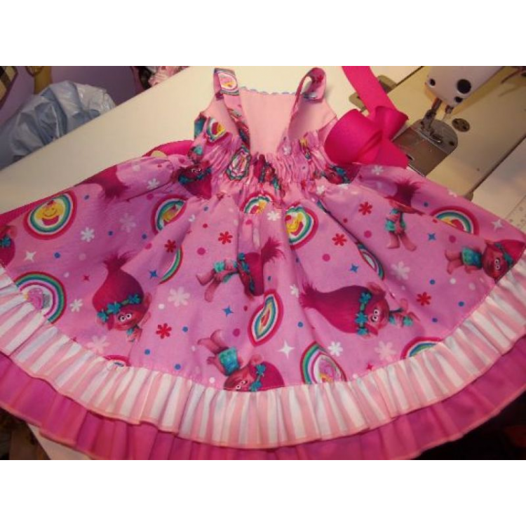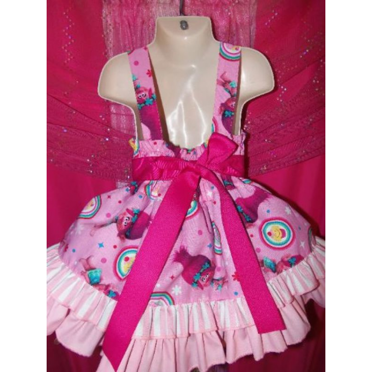 Patchwork Poppy Troll Smile Doll Polka Dots Ruffle Dress Size 18mo Ready to ship