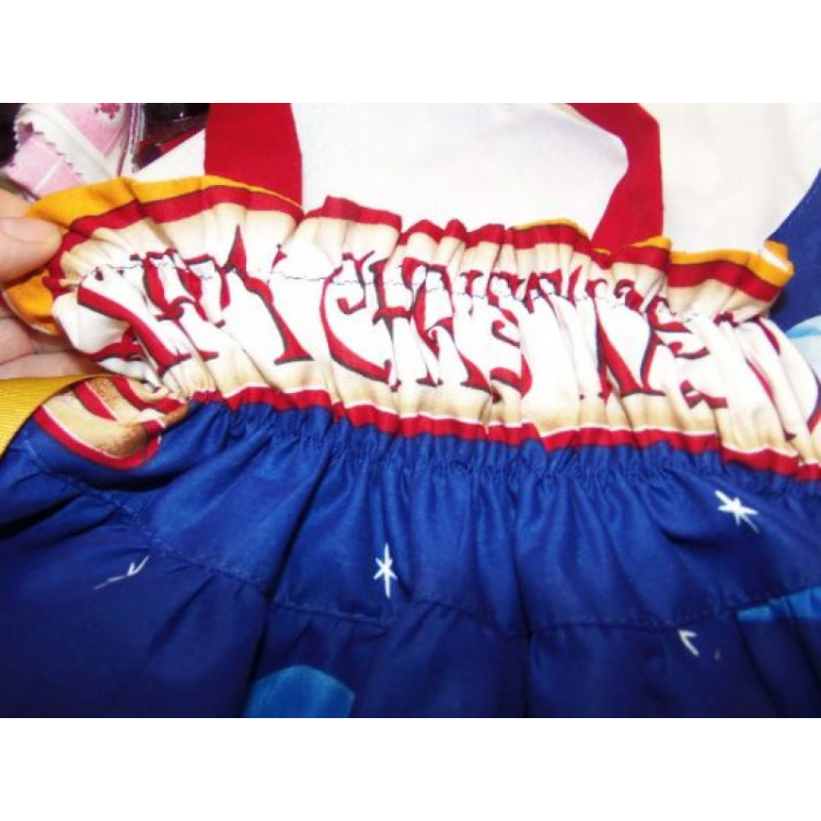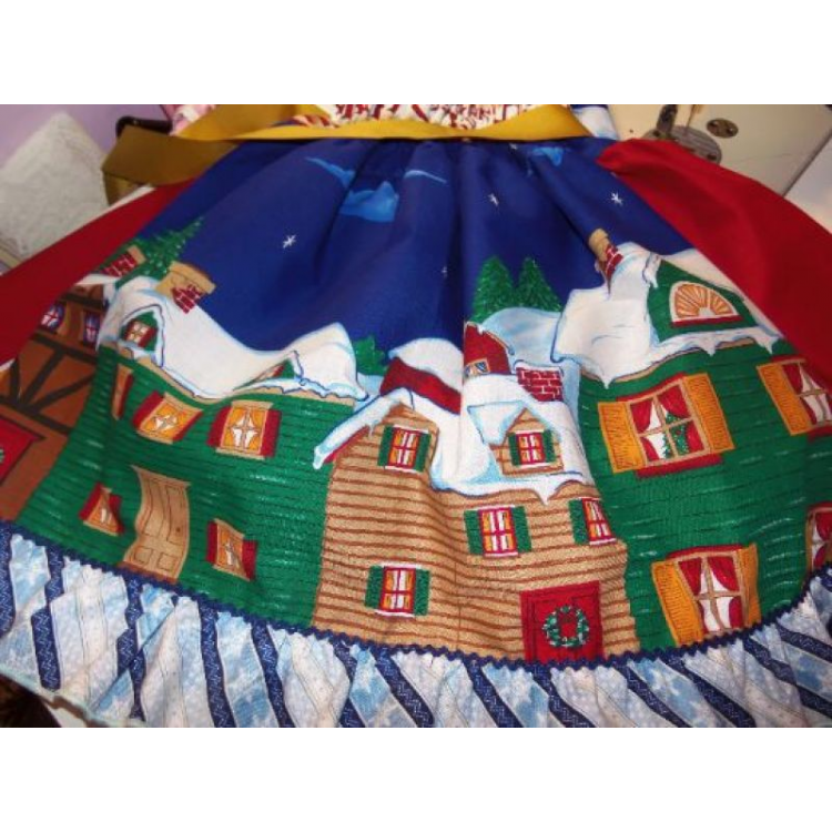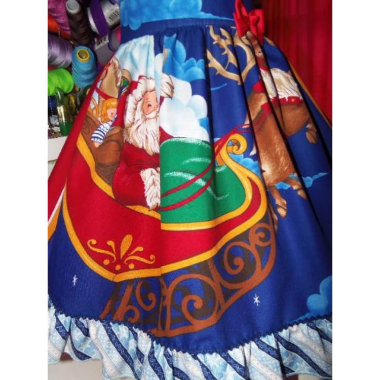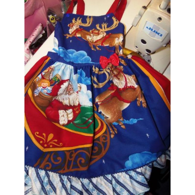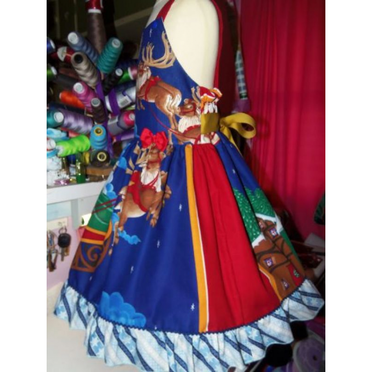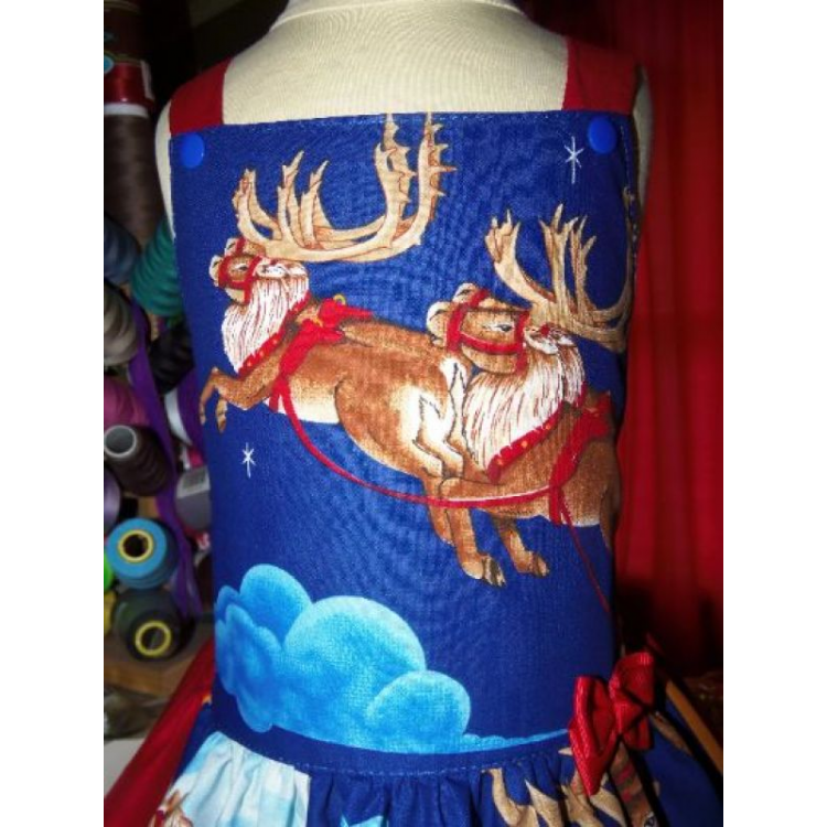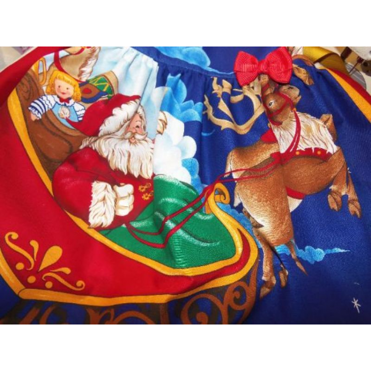 Santa Clause toy deers presents Christmas Village Vintage Fabric Girl Costume Dress Size 7-8 kids