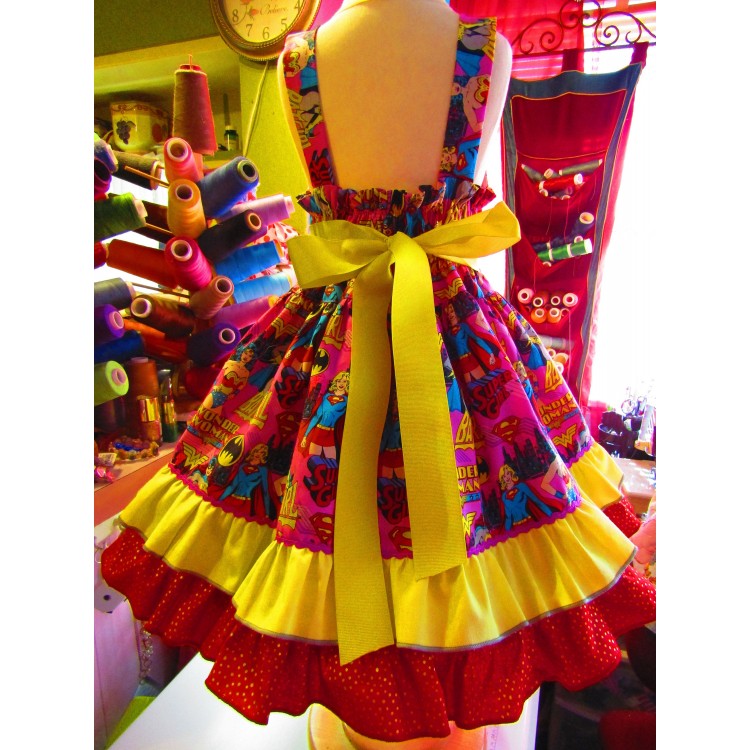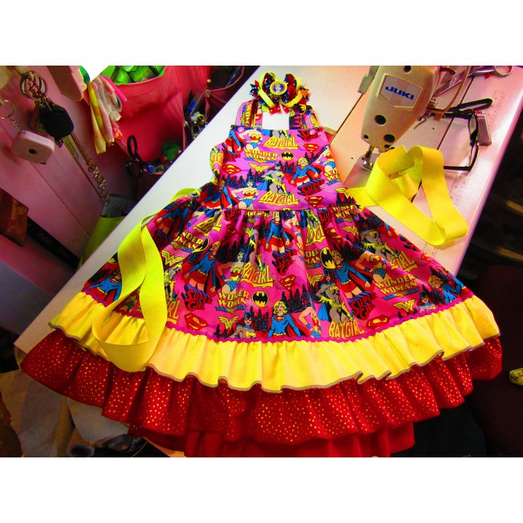 Super Girl bat girl Wonder woman Ruffles Dress Size 4t