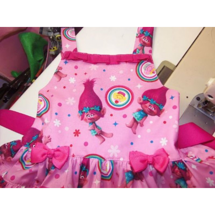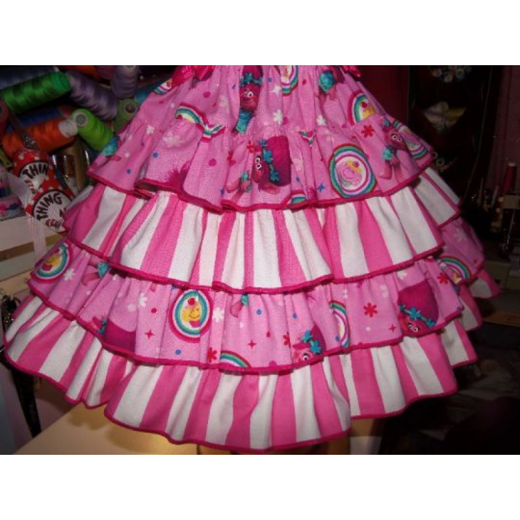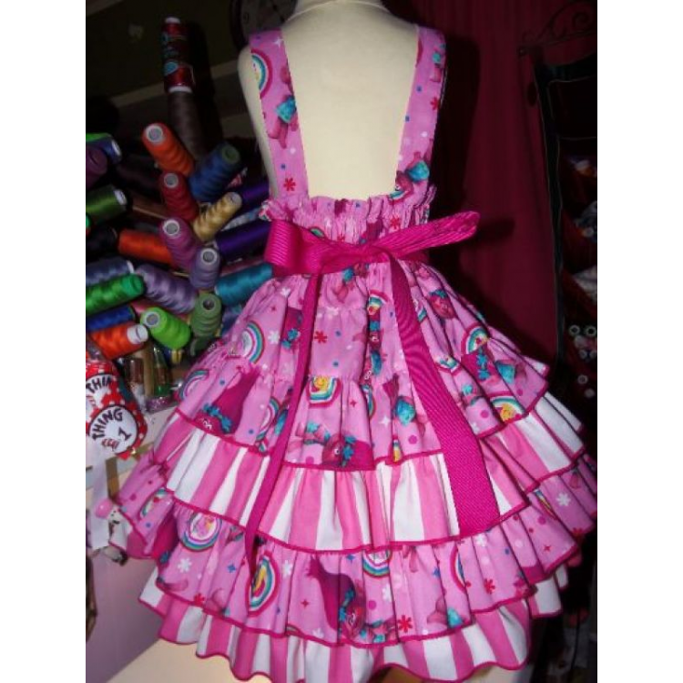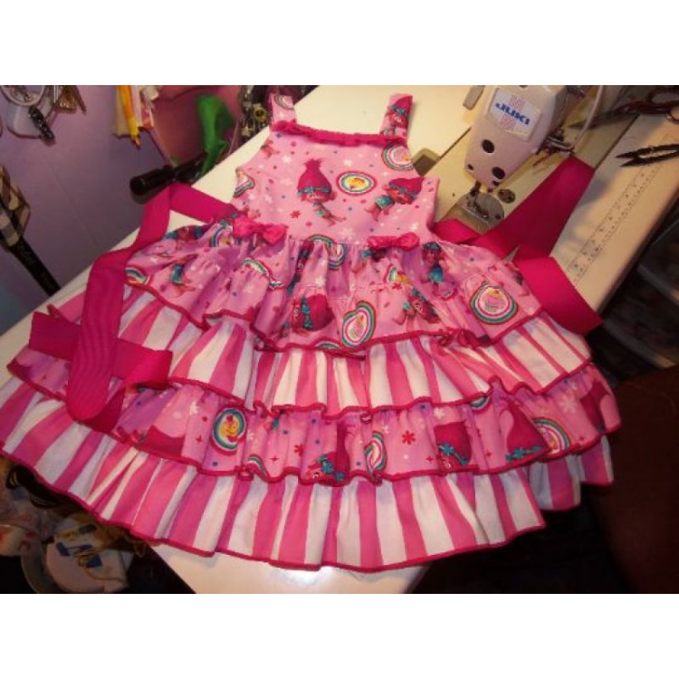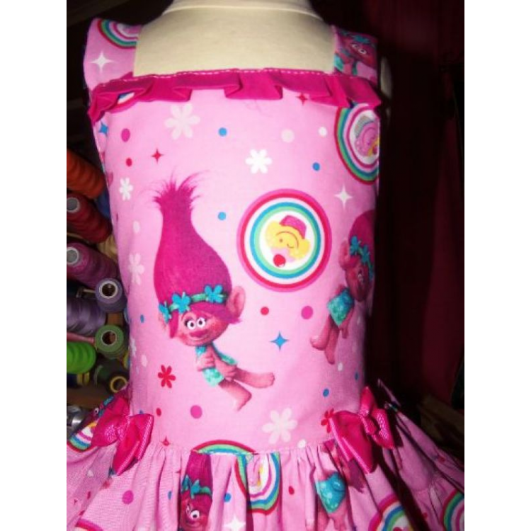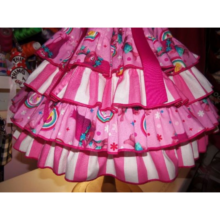 vintage fabric Poppy Troll Smile Doll Ruffle Dress Size 5t/6 Ready to ship