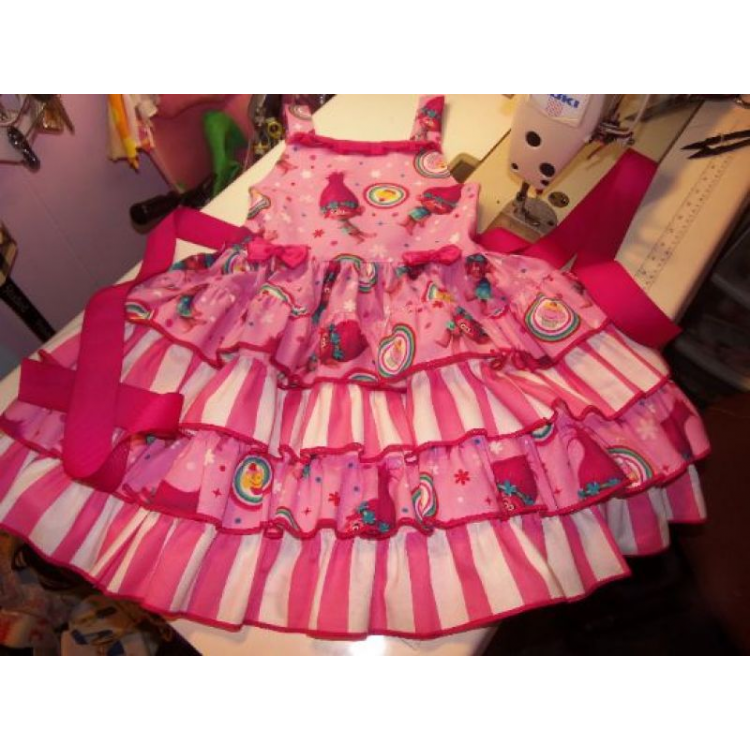 Tags: vintage, fabric, Poppy Troll, Smile Doll, Ruffle Dress, Size 5t/6, Ready to ship